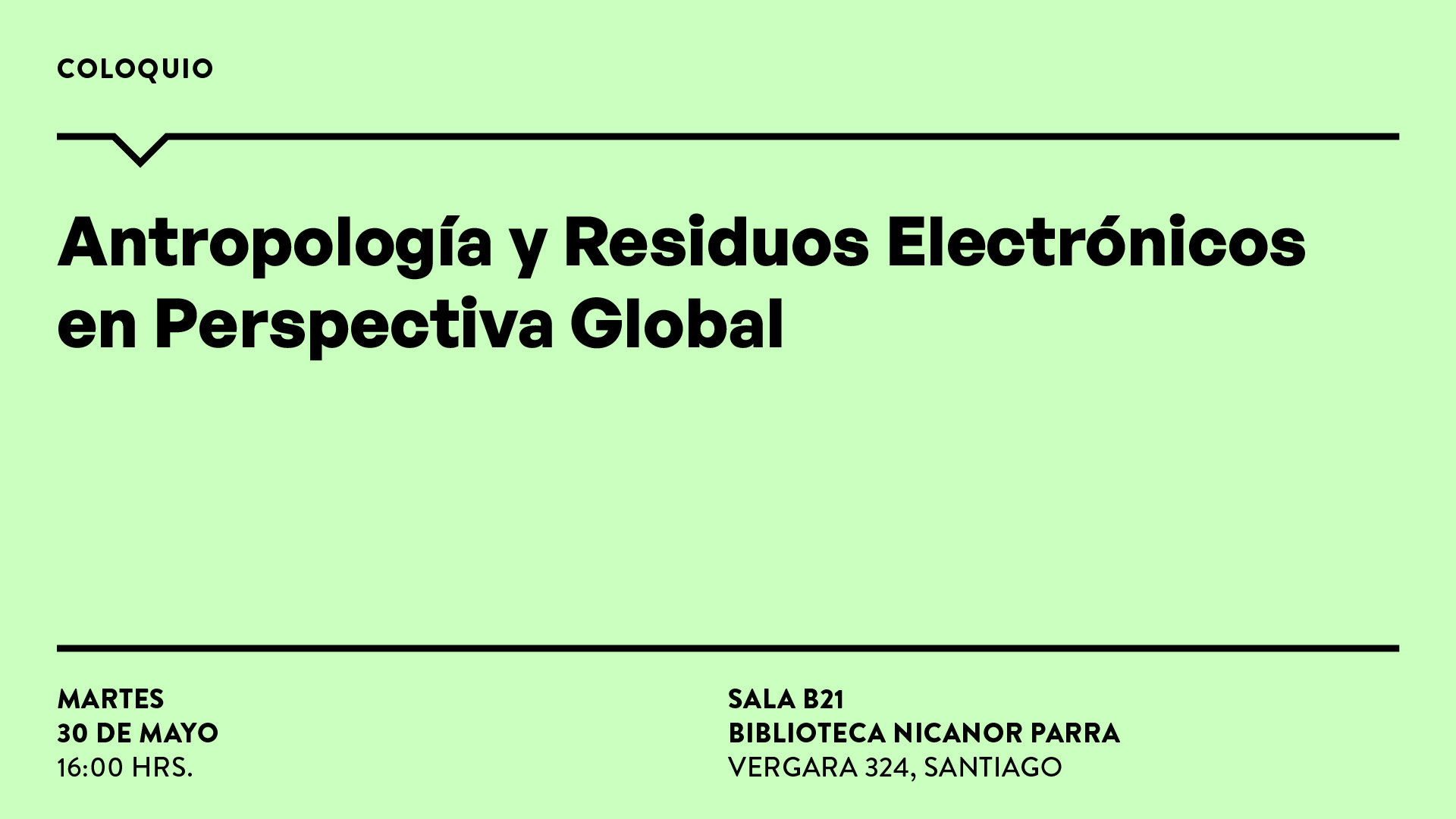 Sala B-21, Biblioteca Nicanor Parra UDP (Vergara 324, Santiago).