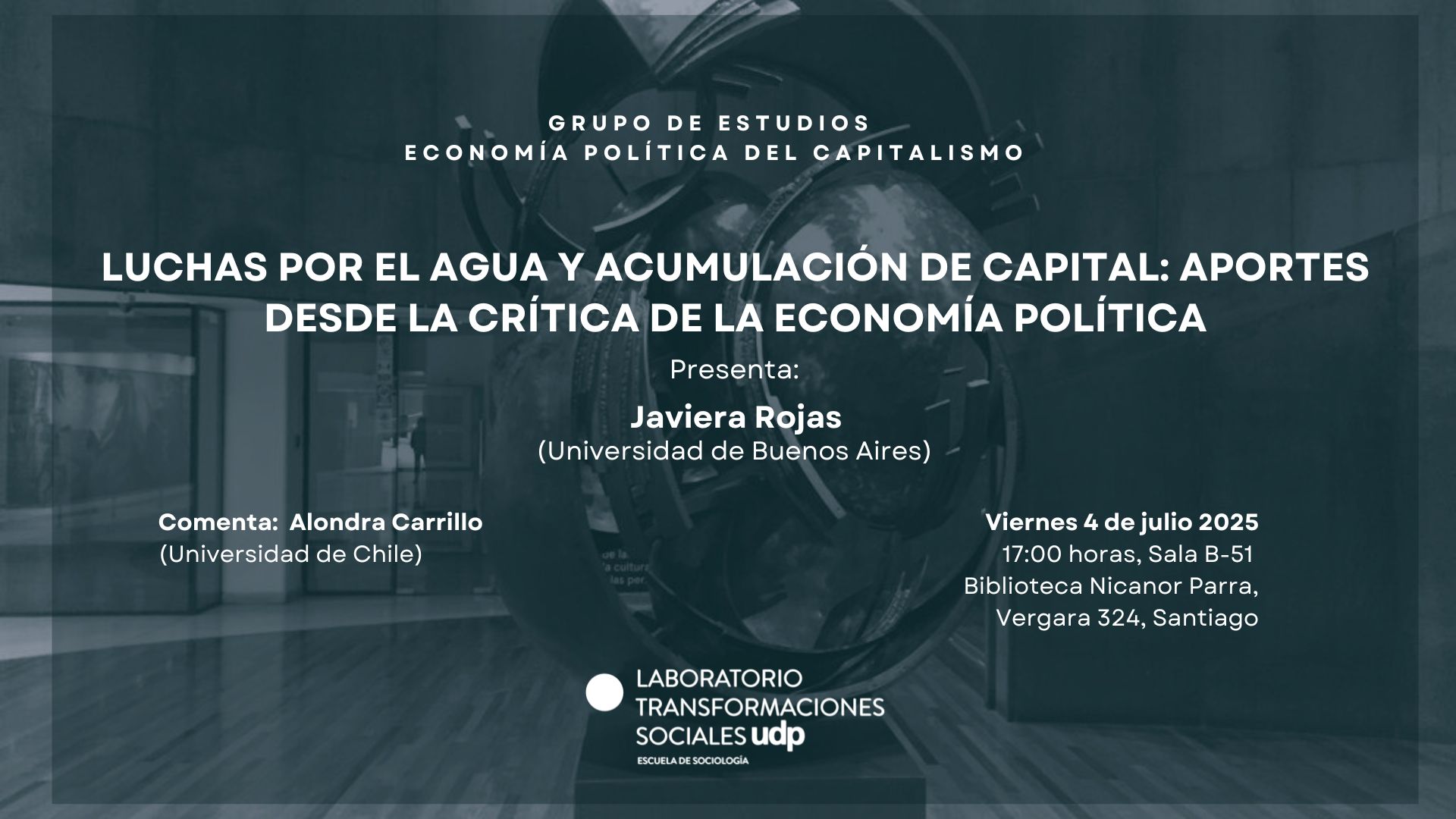 Sala B-51, Biblioteca Nicanor Parra UDP (Vergara 324, Santiago).
