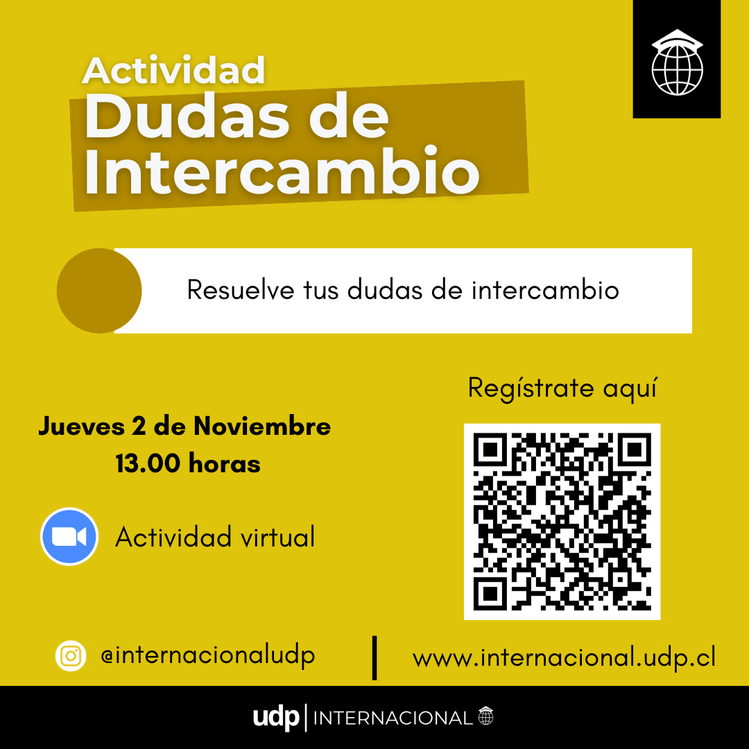 La Dirección General de Relaciones Internacionales UDP realizará una sesión por Zoom en donde responderemos tus dudas sobre el intercambio estudiantil.